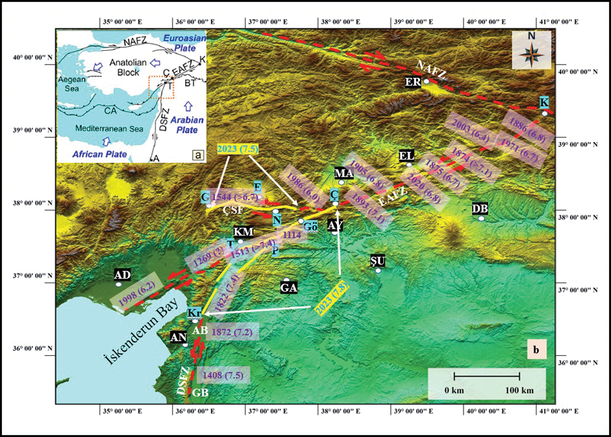 Historic evidence from the past thousand years shows that this stretch of fault has hosted six very large temblors, with reconstructions placing their magnitudes between 7.0 and 7.5. The cities of Antakya in southeastern Türkiye and Aleppo in northern Syria were razed by several earthquakes over this period, including one of M7.0 in 1822 that caused more than 20,000 fatalities.